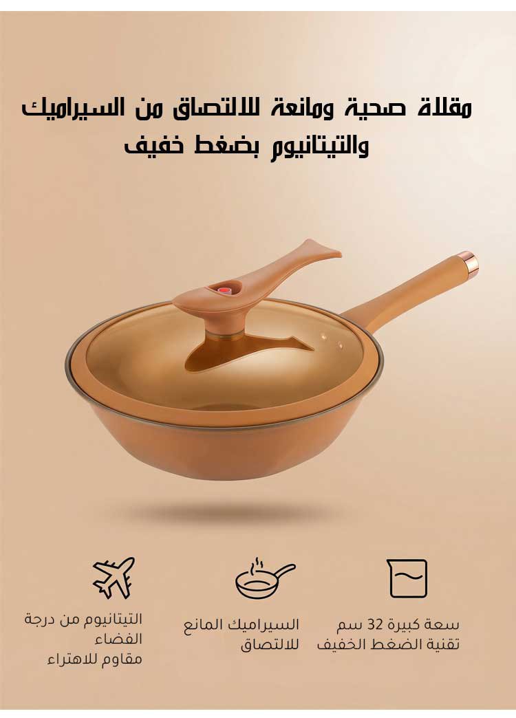 مقلاة صحية ومانعة للالتصاق من السيراميك والتيتانيوم بضغط خفيف